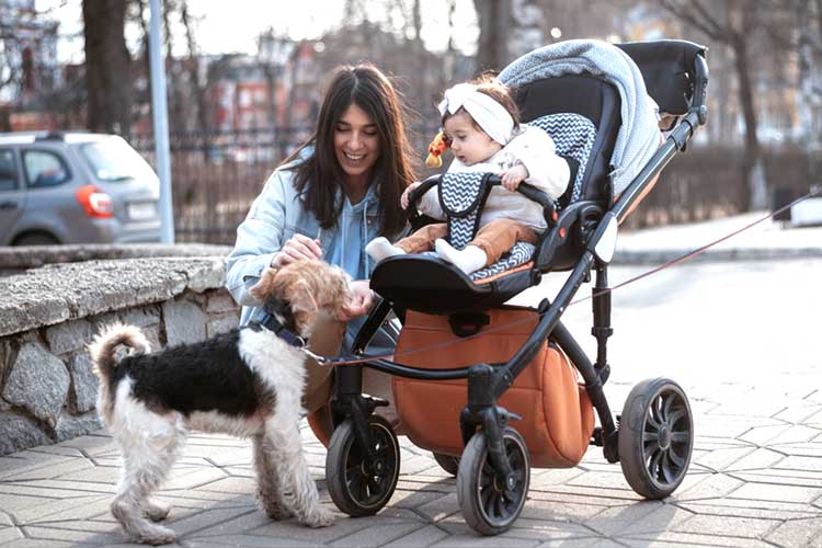 We strongly recommend that you start working on baby preparation before you actually have your baby. We can work with stuffed dolls, baby toys, and a real stroller in order to desensitize your dog and start creating positive associations.